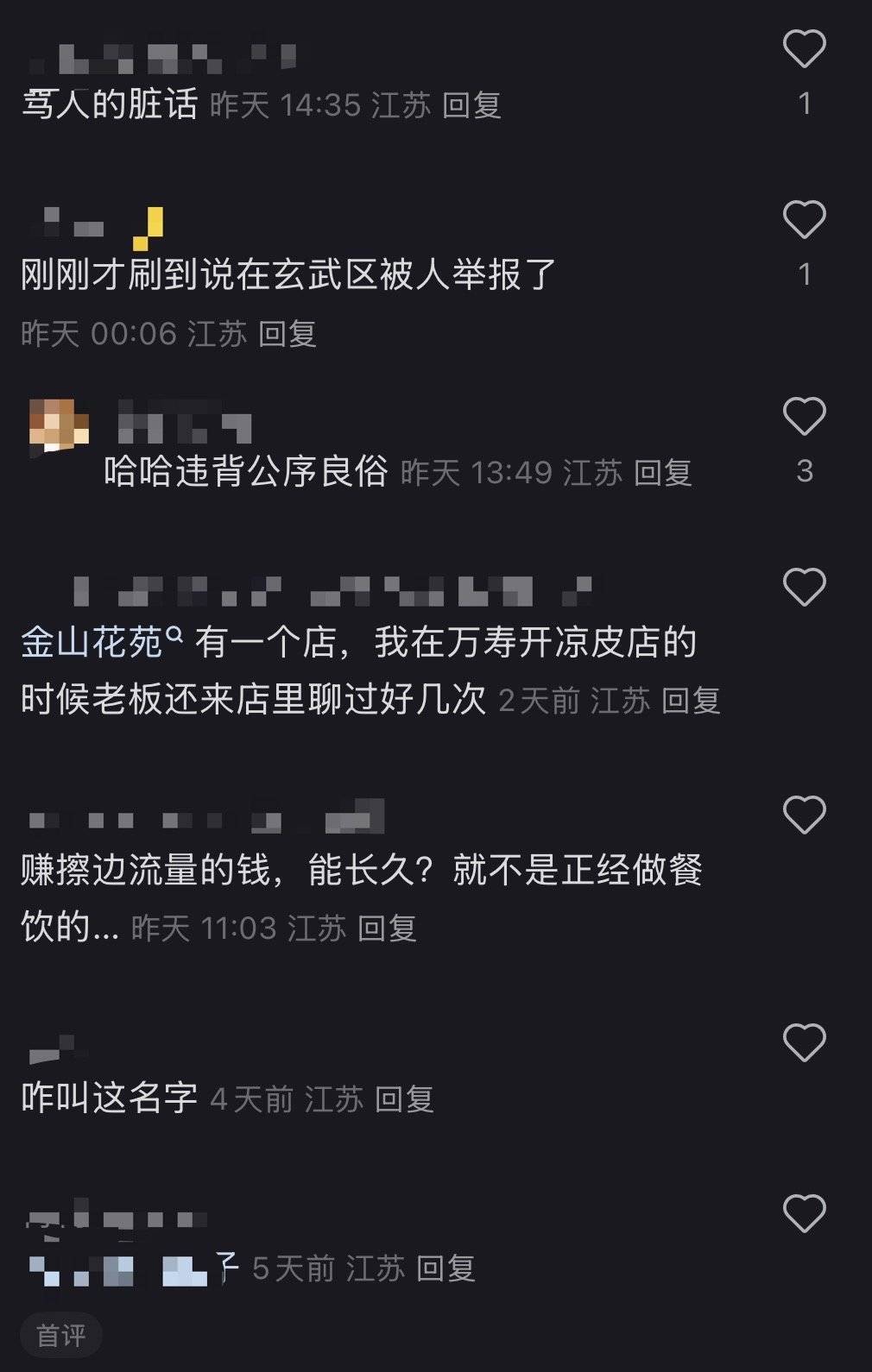 有网友举例了其他几家店铺的名称也存在同样的容易引起歧义的问题,如某知名烤肉连锁店的名称在上海话里有“老太太死掉”的意思。在该店铺的评论区有网友留言,“在南京叫这个名字会不会被打”,也有网友认为,“不违法但是违背公序良俗。”